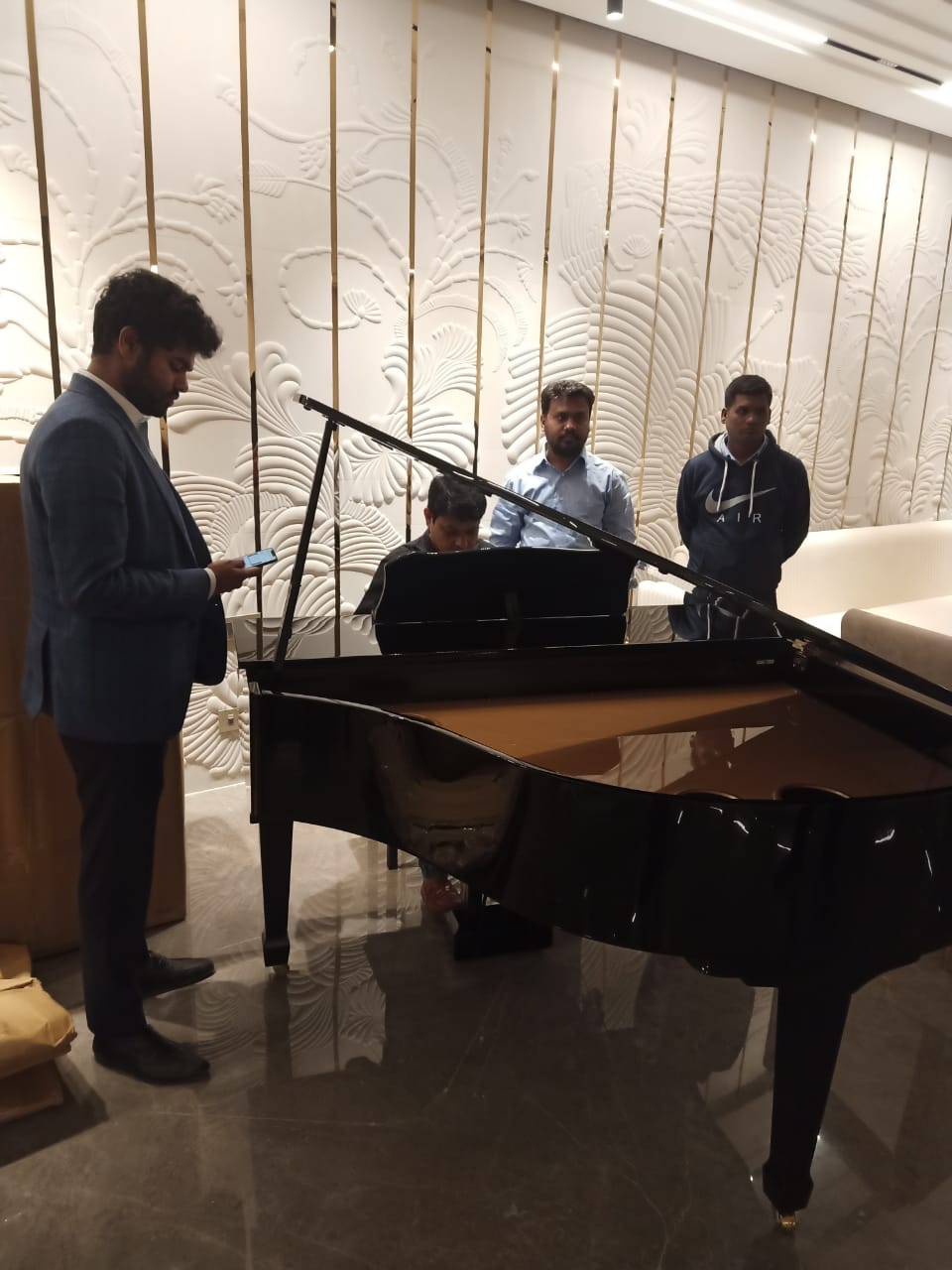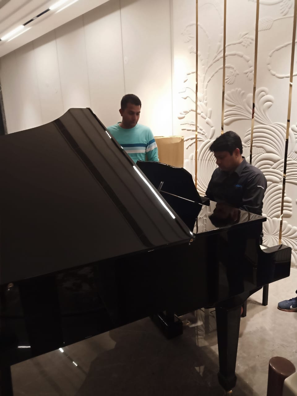 - Premier grand piano with an elegant high-gloss finish and finely crafted details
